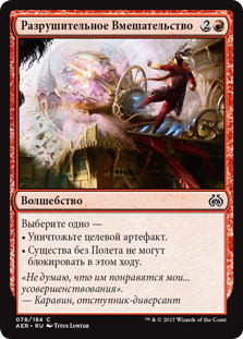 | Rules | Choose one — • Destroy target artifact. • Creatures without flying can't block this turn. |