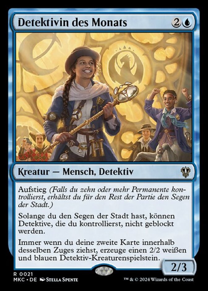 | Rules | Ascend (If you control ten or more permanents, you get the city's blessing for the rest of the game.) As long as you have the city's blessing, Detectives you control can't be blocked. Whenever you draw your second card each turn, create a 2/2 white and blue Detective creature token. |
