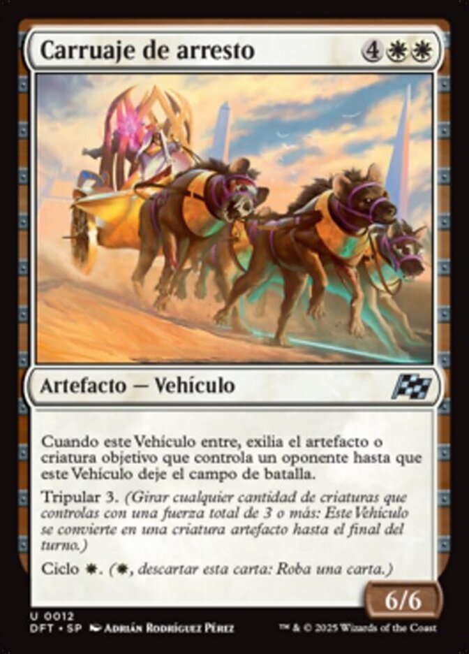 | Rules | When this Vehicle enters, exile target artifact or creature an opponent controls until this Vehicle leaves the battlefield. Crew 3 (Tap any number of creatures you control with total power 3 or more: This Vehicle becomes an artifact creature until end of turn.) Cycling (, Discard this card: Draw a card.) |