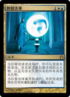 | Rules | When Detention Sphere enters the battlefield, you may exile target nonland permanent not named Detention Sphere and all other permanents with the same name as that permanent. When Detention Sphere leaves the battlefield, return the exiled cards to the battlefield under their owner's control. |