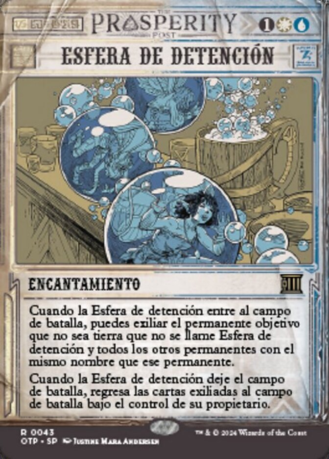 | Rules | When Detention Sphere enters the battlefield, you may exile target nonland permanent not named Detention Sphere and all other permanents with the same name as that permanent. When Detention Sphere leaves the battlefield, return the exiled cards to the battlefield under their owner's control. |