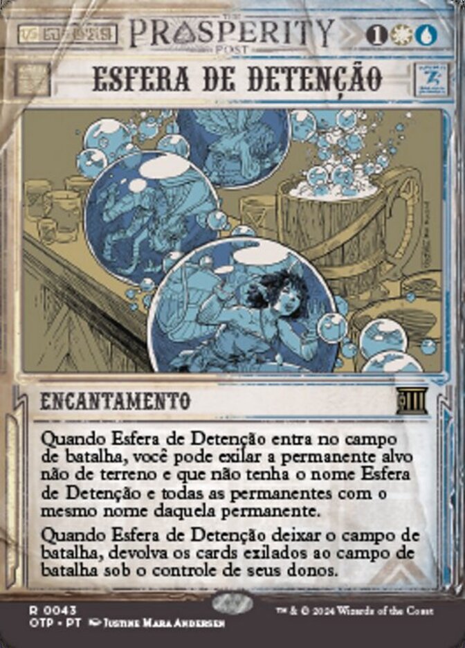 | Rules | When Detention Sphere enters the battlefield, you may exile target nonland permanent not named Detention Sphere and all other permanents with the same name as that permanent. When Detention Sphere leaves the battlefield, return the exiled cards to the battlefield under their owner's control. |