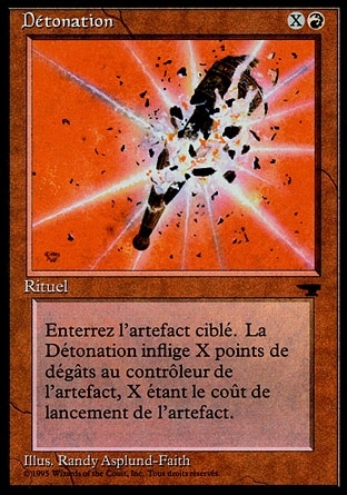 | Rules | Destroy target artifact with mana value X. It can't be regenerated. Detonate deals X damage to that artifact's controller. |