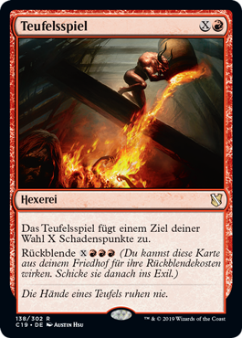 | Rules | Devil's Play deals X damage to any target. Flashback (You may cast this card from your graveyard for its flashback cost. Then exile it.) |