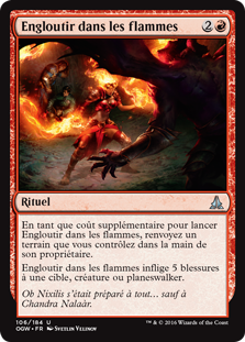 | Rules | As an additional cost to cast this spell, return a land you control to its owner's hand. Devour in Flames deals 5 damage to target creature or planeswalker. |