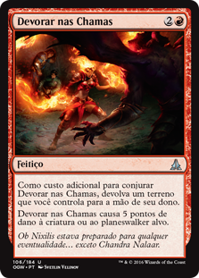| Rules | As an additional cost to cast this spell, return a land you control to its owner's hand. Devour in Flames deals 5 damage to target creature or planeswalker. |