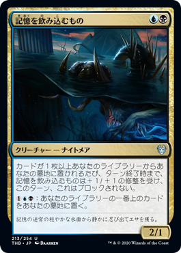 | Rules | Whenever one or more cards are put into your graveyard from your library, Devourer of Memory gets +1/+1 until end of turn and can't be blocked this turn. : Mill a card. |