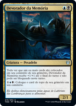 | Rules | Whenever one or more cards are put into your graveyard from your library, Devourer of Memory gets +1/+1 until end of turn and can't be blocked this turn. : Mill a card. |