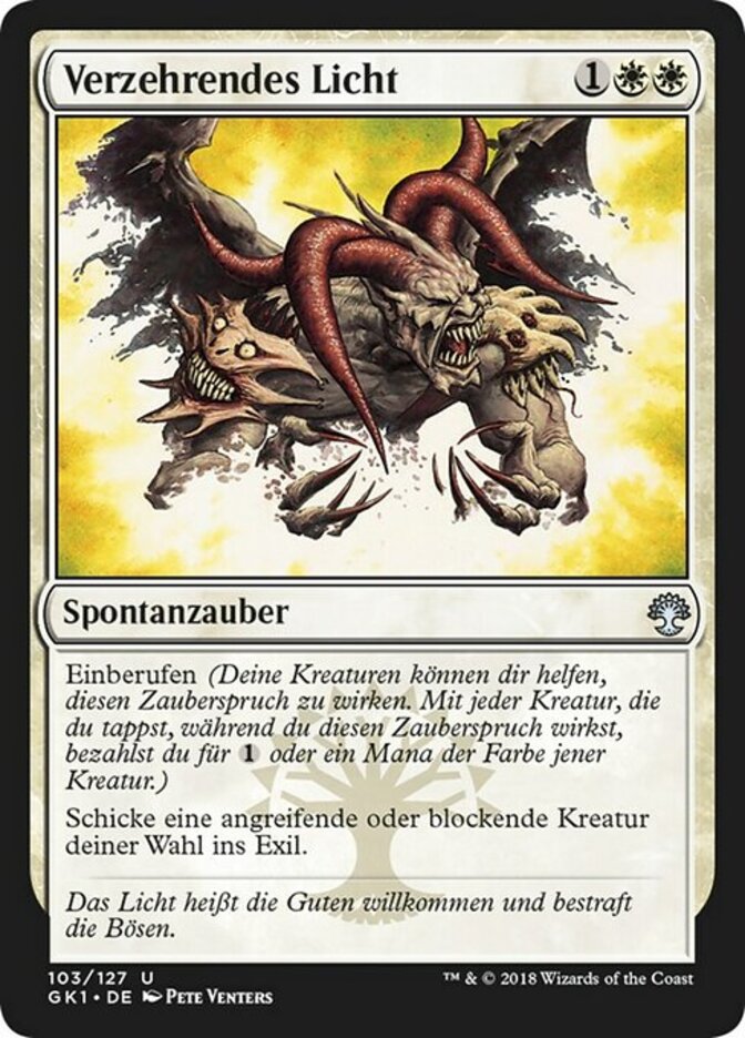 | Rules | Convoke (Your creatures can help cast this spell. Each creature you tap while casting this spell pays for or one mana of that creature's color.) Exile target attacking or blocking creature. |