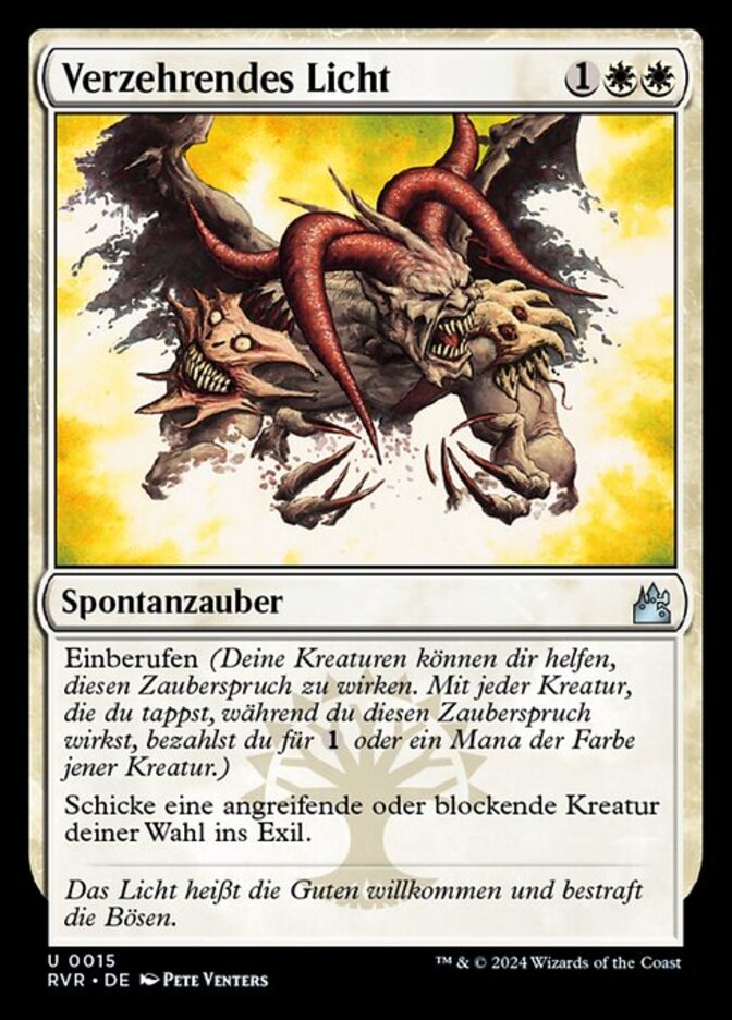 | Rules | Convoke (Your creatures can help cast this spell. Each creature you tap while casting this spell pays for or one mana of that creature's color.) Exile target attacking or blocking creature. |