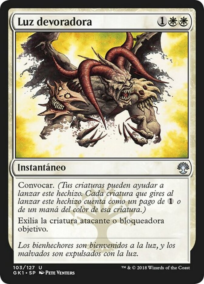 | Rules | Convoke (Your creatures can help cast this spell. Each creature you tap while casting this spell pays for or one mana of that creature's color.) Exile target attacking or blocking creature. |