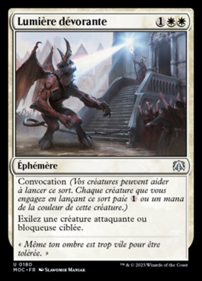 | Rules | Convoke (Your creatures can help cast this spell. Each creature you tap while casting this spell pays for or one mana of that creature's color.) Exile target attacking or blocking creature. |