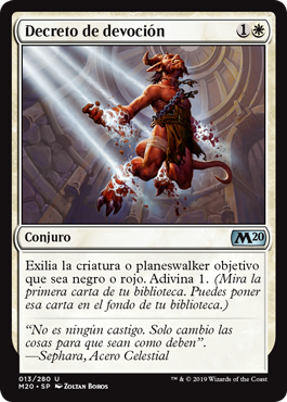 | Rules | Exile target creature or planeswalker that's black or red. Scry 1. (Look at the top card of your library. You may put that card on the bottom of your library.) |