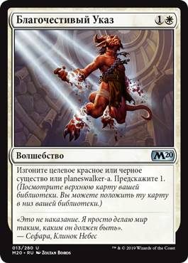 | Rules | Exile target creature or planeswalker that's black or red. Scry 1. (Look at the top card of your library. You may put that card on the bottom of your library.) |