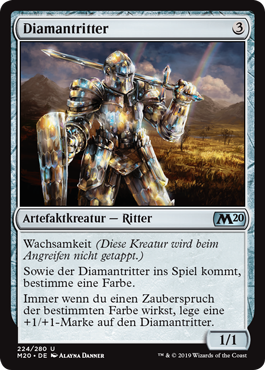 | Rules | Vigilance (Attacking doesn't cause this creature to tap.) As Diamond Knight enters the battlefield, choose a color. Whenever you cast a spell of the chosen color, put a +1/+1 counter on Diamond Knight. |