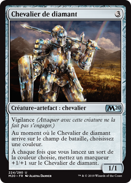 | Rules | Vigilance (Attacking doesn't cause this creature to tap.) As Diamond Knight enters the battlefield, choose a color. Whenever you cast a spell of the chosen color, put a +1/+1 counter on Diamond Knight. |