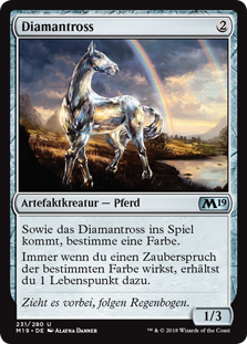 | Rules | As Diamond Mare enters the battlefield, choose a color. Whenever you cast a spell of the chosen color, you gain 1 life. |