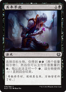 | Rules | Choose target creature. You get (two energy counters), then you may pay any amount of . The creature gets -1/-1 until end of turn for each paid this way. |