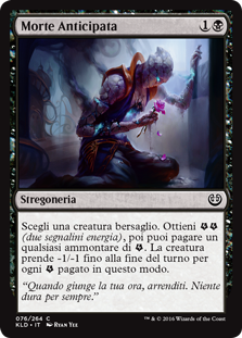 | Rules | Choose target creature. You get (two energy counters), then you may pay any amount of . The creature gets -1/-1 until end of turn for each paid this way. |