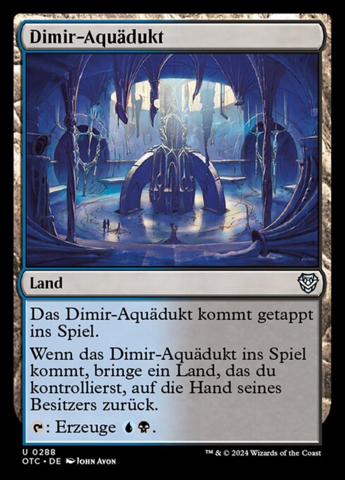 | Rules | Dimir Aqueduct enters the battlefield tapped. When Dimir Aqueduct enters the battlefield, return a land you control to its owner's hand. : Add . |
