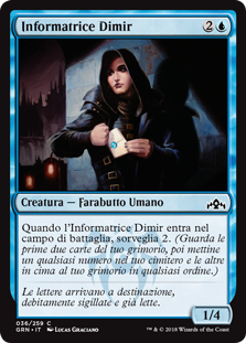 Rules When Dimir Informant enters the battlefield, surveil 2. (Look at the top two cards of your library, then put any number of them into your graveyard and the rest on top of your library in any order.)