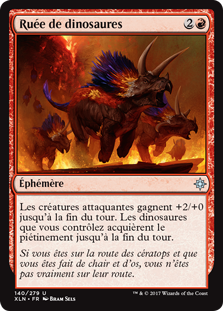 | Rules | Attacking creatures get +2/+0 until end of turn. Dinosaurs you control gain trample until end of turn. |