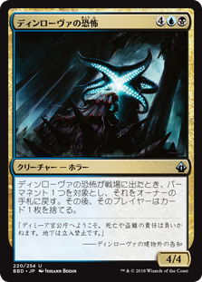 | Rules | When Dinrova Horror enters the battlefield, return target permanent to its owner's hand, then that player discards a card. |