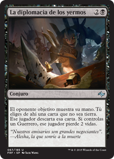 | Rules | Target opponent reveals their hand. You choose a nonland card from it. That player discards that card. If you control a Warrior, that player loses 2 life. |