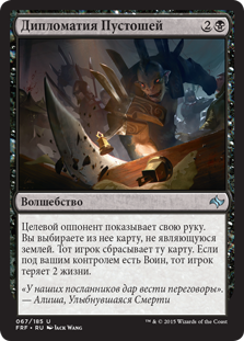 | Rules | Target opponent reveals their hand. You choose a nonland card from it. That player discards that card. If you control a Warrior, that player loses 2 life. |