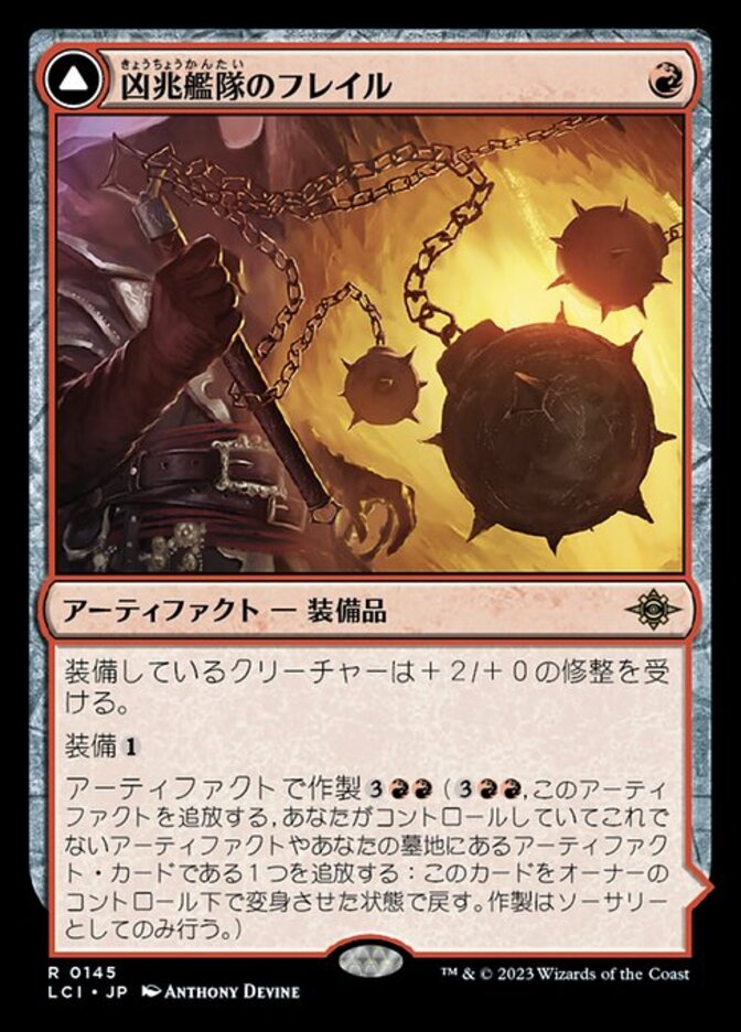 | Rules | Equipped creature gets +2/+0. Equip Craft with artifact (, Exile this artifact, Exile another artifact you control or an artifact card from your graveyard: Return this card transformed under its owner's control. Craft only as a sorcery.) // Equipped creature gets +3/+0 and has "Whenever this creature attacks, you may sacrifice an artifact other than Dire Blunderbuss. When you do, this creature deals damage equal to its power to target creature." Equip |