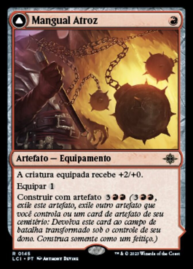 | Rules | Equipped creature gets +2/+0. Equip Craft with artifact (, Exile this artifact, Exile another artifact you control or an artifact card from your graveyard: Return this card transformed under its owner's control. Craft only as a sorcery.) // Equipped creature gets +3/+0 and has "Whenever this creature attacks, you may sacrifice an artifact other than Dire Blunderbuss. When you do, this creature deals damage equal to its power to target creature." Equip |