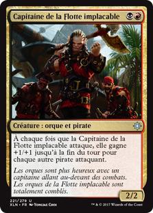 | Rules | Whenever Dire Fleet Captain attacks, it gets +1/+1 until end of turn for each other attacking Pirate. |