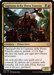 | Rules | Whenever Dire Fleet Captain attacks, it gets +1/+1 until end of turn for each other attacking Pirate. |