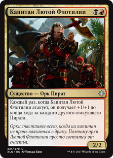 | Rules | Whenever Dire Fleet Captain attacks, it gets +1/+1 until end of turn for each other attacking Pirate. |