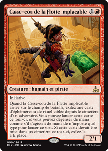 | Rules | First strike When Dire Fleet Daredevil enters the battlefield, exile target instant or sorcery card from an opponent's graveyard. You may cast it this turn, and you may spend mana as though it were mana of any type to cast that spell. If that spell would be put into a graveyard this turn, exile it instead. |