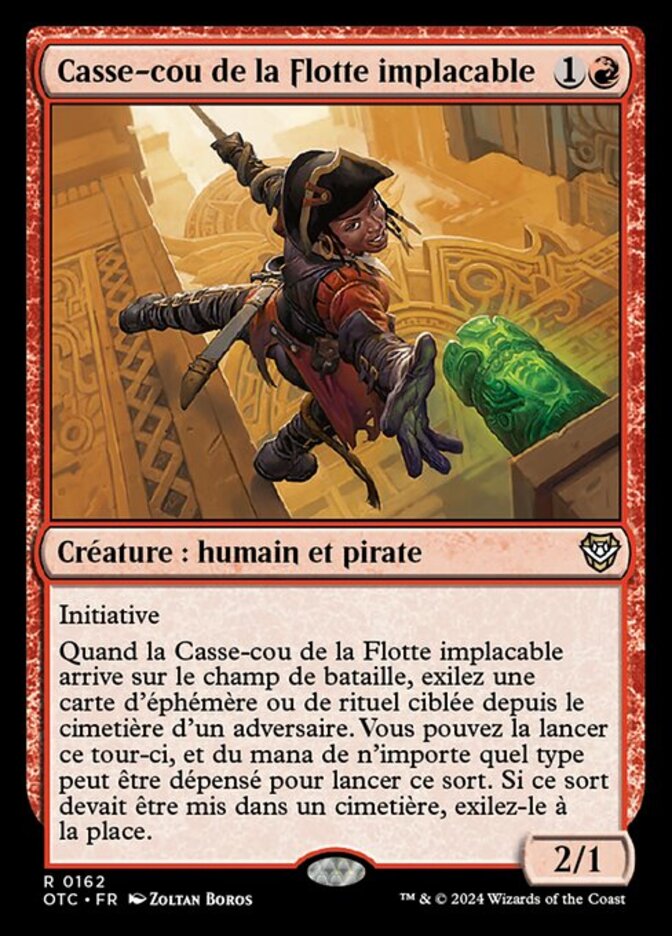 | Rules | First strike When Dire Fleet Daredevil enters the battlefield, exile target instant or sorcery card from an opponent's graveyard. You may cast it this turn, and you may spend mana as though it were mana of any type to cast that spell. If that spell would be put into a graveyard this turn, exile it instead. |