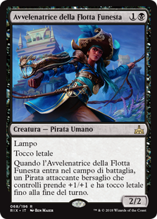 | Rules | Flash Deathtouch When Dire Fleet Poisoner enters the battlefield, target attacking Pirate you control gets +1/+1 and gains deathtouch until end of turn. |