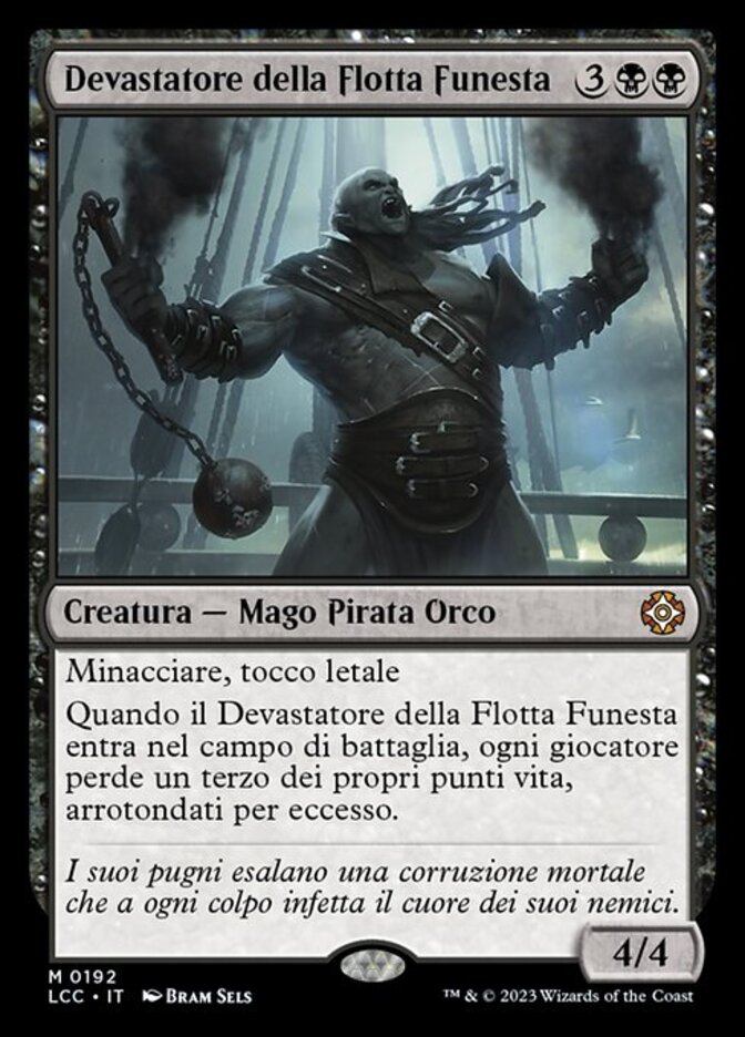 | Rules | Menace, deathtouch When Dire Fleet Ravager enters the battlefield, each player loses a third of their life, rounded up. |