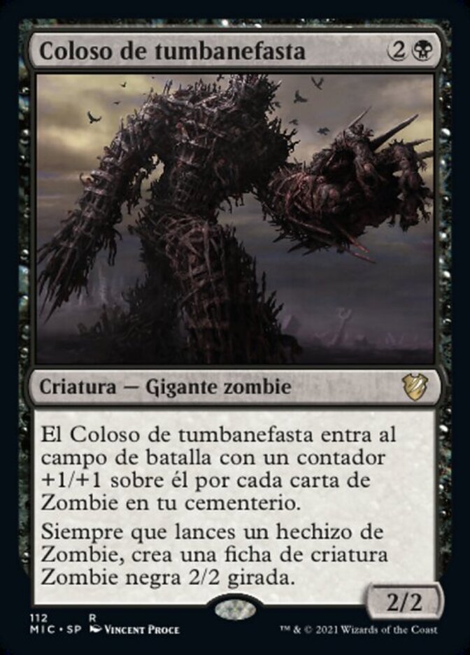 | Rules | Diregraf Colossus enters the battlefield with a +1/+1 counter on it for each Zombie card in your graveyard. Whenever you cast a Zombie spell, create a tapped 2/2 black Zombie creature token. |