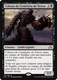 | Rules | Diregraf Colossus enters the battlefield with a +1/+1 counter on it for each Zombie card in your graveyard. Whenever you cast a Zombie spell, create a tapped 2/2 black Zombie creature token. |