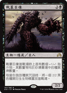 | Rules | Diregraf Colossus enters the battlefield with a +1/+1 counter on it for each Zombie card in your graveyard. Whenever you cast a Zombie spell, create a tapped 2/2 black Zombie creature token. |