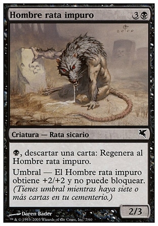 Threshold — As long as seven or more cards are in your graveyard, Dirty Wererat gets +2/+2 and can't block.