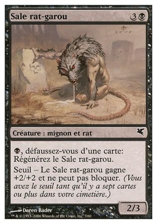 | Rules | , Discard a card: Regenerate Dirty Wererat. Threshold — As long as seven or more cards are in your graveyard, Dirty Wererat gets +2/+2 and can't block. |