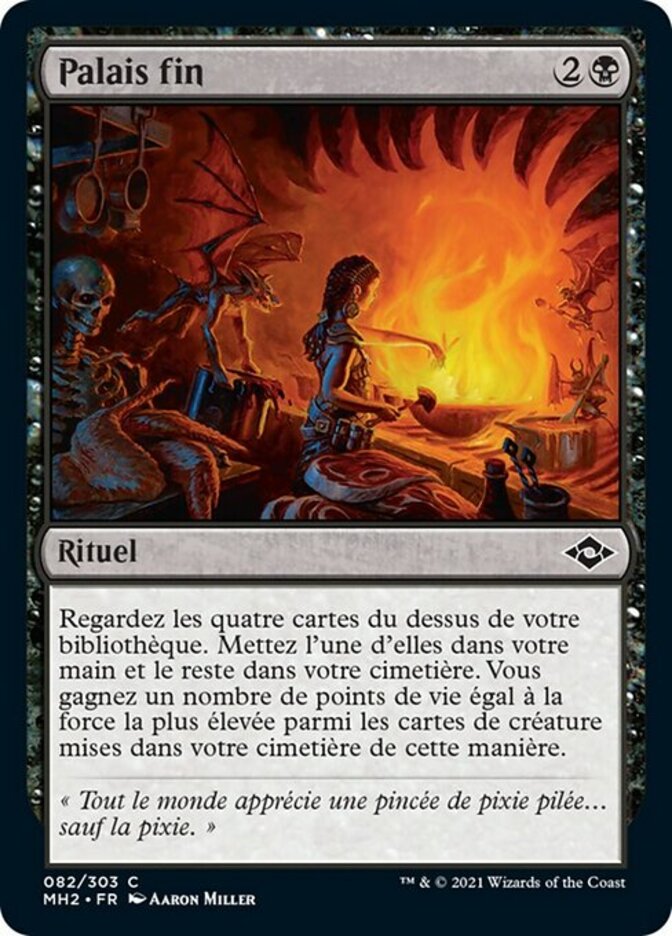 | Rules | Look at the top four cards of your library. Put one of them into your hand and the rest into your graveyard. You gain life equal to the greatest power among creature cards put into your graveyard this way. |