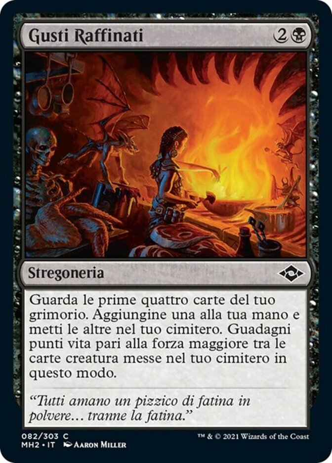 | Rules | Look at the top four cards of your library. Put one of them into your hand and the rest into your graveyard. You gain life equal to the greatest power among creature cards put into your graveyard this way. |