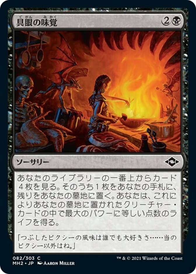 | Rules | Look at the top four cards of your library. Put one of them into your hand and the rest into your graveyard. You gain life equal to the greatest power among creature cards put into your graveyard this way. |