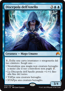 | Rules | , Exile an instant or sorcery card from your graveyard: Choose one — • Counter target noncreature spell unless its controller pays . • Disciple of the Ring gets +1/+1 until end of turn. • Tap target creature. • Untap target creature. |