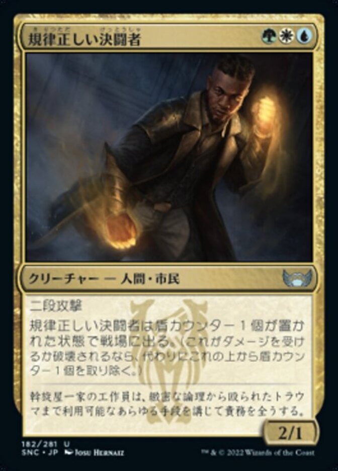 | Rules | Double strike Disciplined Duelist enters the battlefield with a shield counter on it. (If it would be dealt damage or destroyed, remove a shield counter from it instead.) |