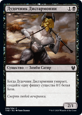 | Rules | When Discordant Piper dies, create a 0/1 white Goat creature token. |