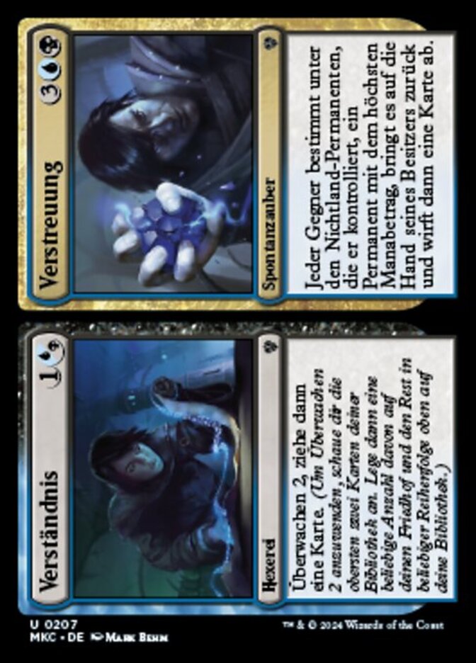 | Rules | Surveil 2, then draw a card. (To surveil 2, look at the top two cards of your library, then put any number of them into your graveyard and the rest on top of your library in any order.) // Each opponent returns a nonland permanent they control with the highest mana value among permanents they control to its owner's hand, then discards a card. |